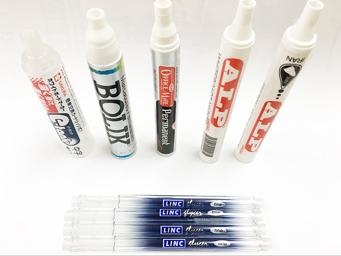 文具、玩具類の熱転寫ラベルは「ABS、AS、PP、PMMA、PCなどの材質(zhì)のボールペン、シャープペンシル、修正テープ、定規(guī)、文具用品に広く応用されている」。